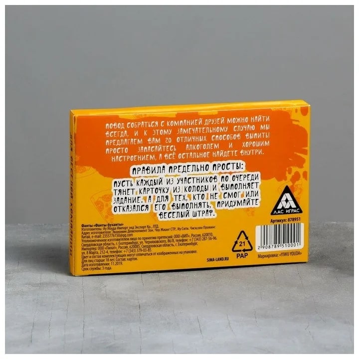 Купить игра для компании "фанты буханты" 20 карт от 100 руб. с доставкой до пункта выдачи в Бердске. Интернет магазин ДекаМаркет. Оплата при получении.